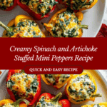 These Spinach and Artichoke Stuffed Mini Peppers are a delicious and creamy appetizer featuring tender mini bell peppers filled with a savory blend of spinach, artichoke hearts, cream cheese, and melted cheeses. Perfect for parties or a light snack, they are baked to golden perfection for a warm and cheesy bite.