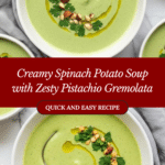 This Spinach Potato Soup with Pistachio Gremolata is a comforting and vibrant dish that blends creamy potatoes and fresh spinach with a zesty, nutty topping. It’s perfect for a cozy lunch or light dinner and comes together with simple ingredients you likely have on hand.