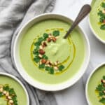 Keywords: spinach soup, potato soup, pistachio gremolata, healthy soup, creamy spinach potato soup, easy soup recipe, vegetarian soup, healthy dinner