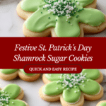These St. Patrick’s Day Shamrock Sugar Cookies are a festive and delightful treat perfect for celebrating the holiday. Featuring a buttery, melt-in-your-mouth texture and a sweet, simple flavor, these cookies are cut into charming shamrock shapes and decorated with green royal icing and optional sprinkles. Ideal for parties or a cozy tea time, these cookies bring fun and cheer to any St. Patrick’s Day celebration.