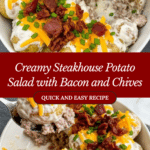 This Steakhouse Potato Salad is a creamy, flavorful side dish perfect for barbecues or family dinners. With tender potatoes, crispy bacon, and a tangy dressing, it’s a delicious twist on the classic potato salad.
