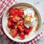 A delightful and nostalgic Strawberry Shortcake Yogurt Bowl combining creamy Greek yogurt, fresh strawberries, and a satisfying shortcake-style crunch. Perfect as a quick breakfast or a light snack that captures the essence of summer dessert flavors.