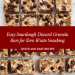 These tasty sourdough discard granola bars are a delicious, zero-waste snack perfect for using up leftover sourdough starter. Made with rolled oats, peanut butter, honey, and optional mini chocolate chips, they offer a chewy, homemade alternative to store-bought bars. Ideal for lunchboxes, quick breakfasts, or on-the-go energy, these bars are customizable, easy to prepare, and budget-friendly.