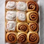 Store cooled cinnamon rolls in an airtight container at room temperature for up to 2 days. For longer storage, freeze the rolls without icing in a sealed bag for up to 3 months. Reheat in the oven at 300°F until warmed through, then spread the cream cheese icing before serving.