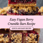 These Berry Crumble Bars are a delicious vegan dessert featuring a crumbly oat and flour base topped with a vibrant mixed berry filling and a golden crumble topping. Perfectly balanced with a touch of cinnamon and fresh lemon juice, these bars are baked to perfection and make a delightful treat for any occasion.