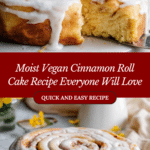This Vegan Cinnamon Roll Cake is a delightful plant-based treat that combines the comforting flavors of classic cinnamon rolls in an easy-to-make, moist cake form. Perfectly fluffy with a cinnamon swirl center and a sweet glaze on top, this cake is ideal for breakfast, brunch, or dessert. Made with vegan butter, aquafaba for fluffiness, and dairy-free milk, it caters to vegan diets without compromising on taste or texture.