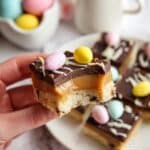 Keywords: Vegan shortbread, Millionaires shortbread, Vegan caramel, Mini eggs dessert, Easter vegan dessert, Dairy-free chocolate bars, Festive vegan treat