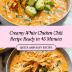 This White Chicken Chili is a comforting, creamy twist on traditional chili that’s perfect for cozy dinners. Packed with tender chicken, beans, and a blend of flavorful spices, it comes together quickly and makes a satisfying meal for the whole family.