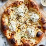 This Irresistible White Sauce Pizza features a creamy garlic béchamel base topped with a blend of mozzarella, parmesan, and ricotta cheeses, finished with a fresh arugula salad tossed in a tangy balsamic dressing. Baked to perfection on a pizza stone or steel for a crispy crust and gooey cheese, this pizza offers a delightful combination of rich, savory, and fresh flavors in under 30 minutes.