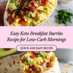 This Keto Breakfast Burrito is a delicious low-carb, high-fat breakfast option perfectly suited for those following a ketogenic lifestyle. It features a protein-packed filling with scrambled eggs, crispy bacon or sausage, sautéed vegetables, avocado, and cheese, all wrapped in a keto-friendly low-carb tortilla alternative. Quick, customizable, and satisfying, this burrito is perfect for busy mornings and helps keep you energized and full throughout the day.